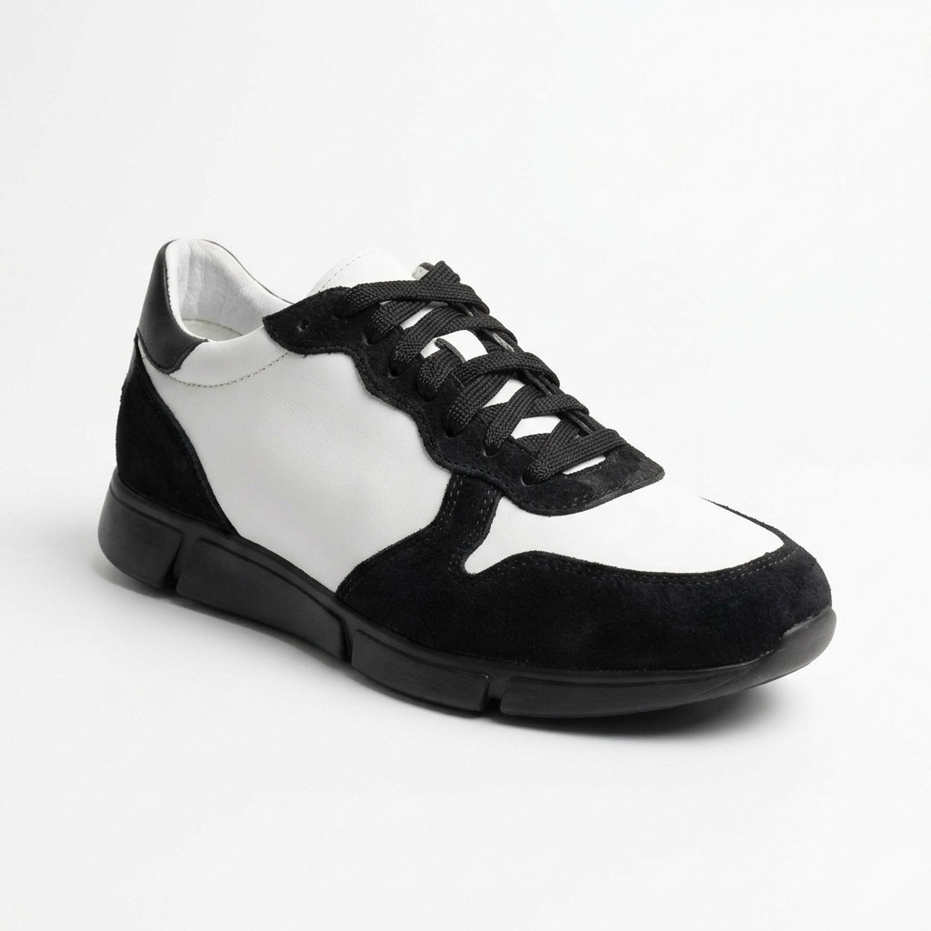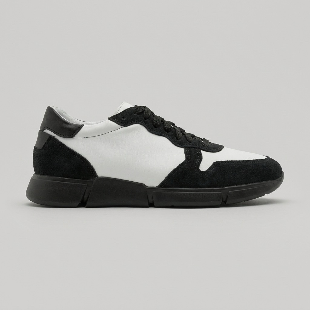 Изработени изцяло от естествена кожа в черно и бяло, тези обувки съчетават класическа здравина с модерна визия, която лесно се вписва както в ежедневни, така и в по-елегантни комбинации.