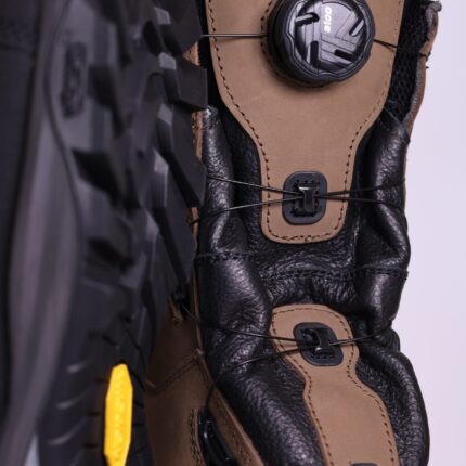 Моделът Tan Orange Velour се предлага с избор между Trekking подметка и Vibram подметка, като Vibramосигурява по-добро сцепление, по-голяма устойчивост и по-надеждно представяне върху трудни и хлъзгави терени.